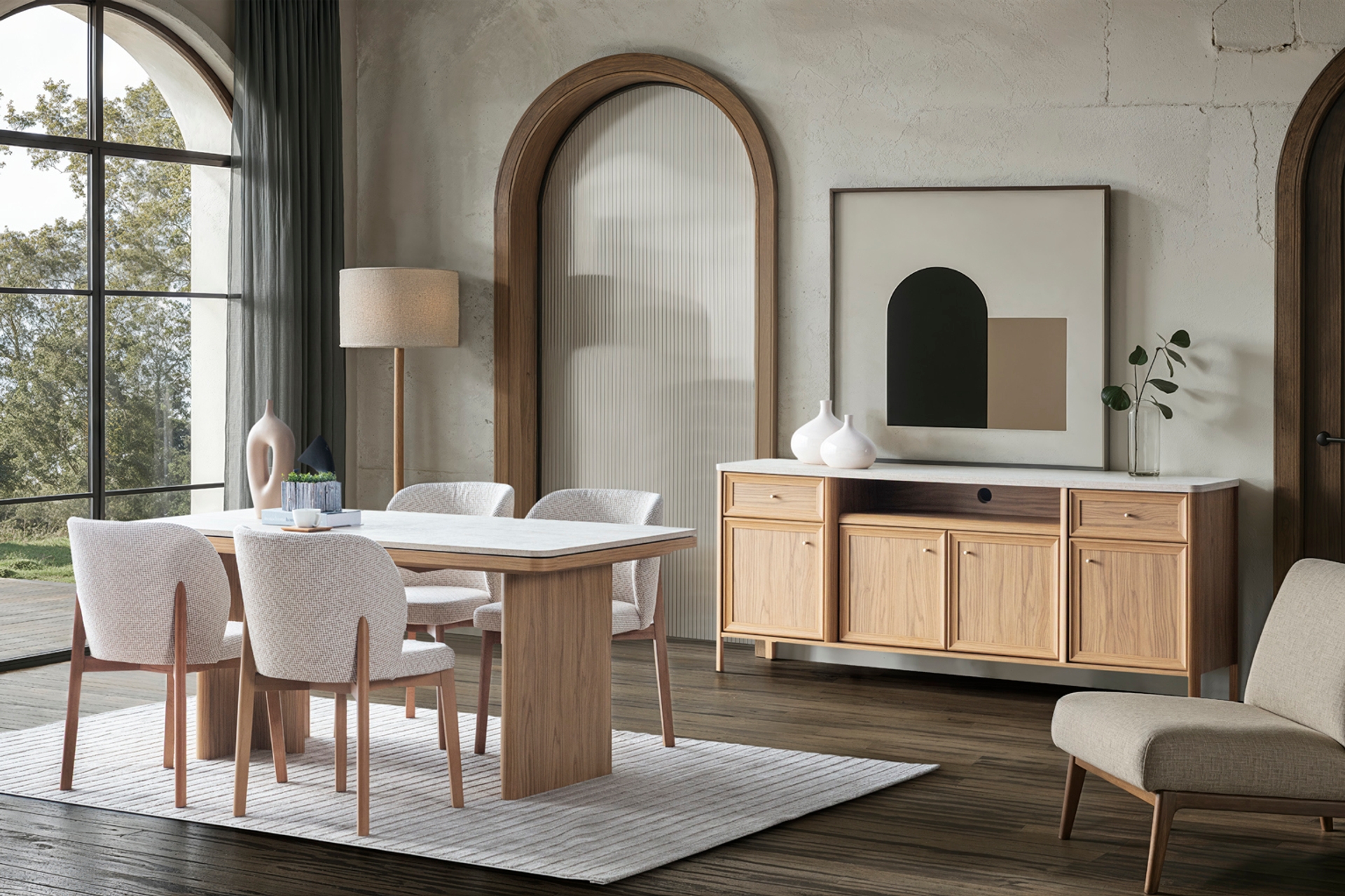 SOLİ BOHEM KAYIN AHŞAP YEMEK ODASI TAKIMI, BEJ